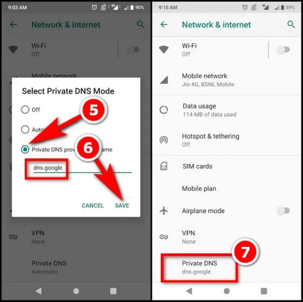 Bước 4: Nhấn Save để hoàn tất quá trình đổi DNS Google trên Android.