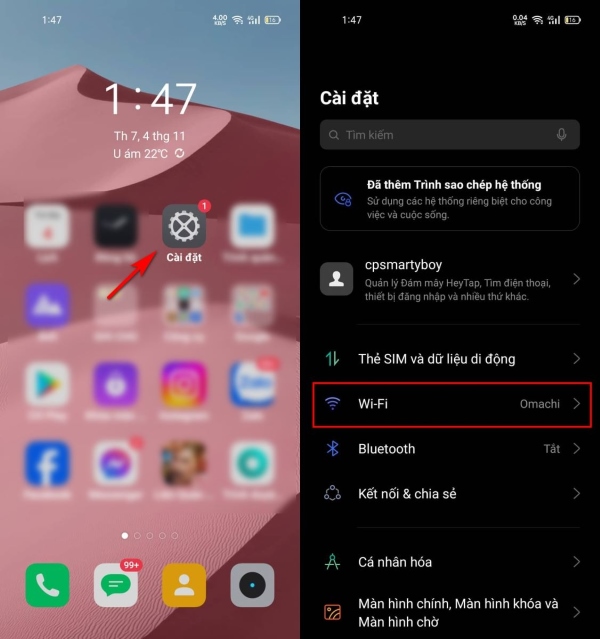 Bước 1: Mở Settings (Cài đặt) và chọn Wi-Fi.