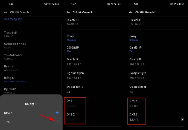 - Google DNS: 8.8.8.8 hoặc 8.8.4.4 (khuyên dùng).