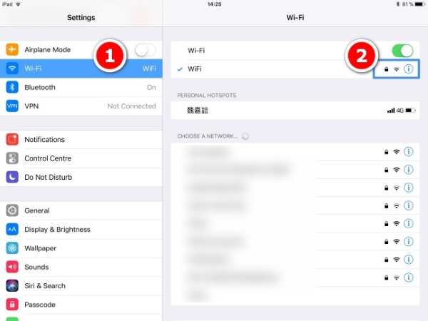 Bước 3: Nhấp vào biểu tượng chữ i để truy cập cài đặt mạng Wi-Fi.