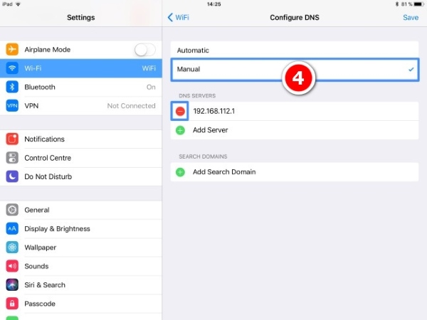 Bước 3: Chọn Manual (Thủ công) và nhập địa chỉ IP của Google để đổi DNS. Bạn cũng có thể xóa toàn bộ máy chủ DNS mặc định trong danh sách.