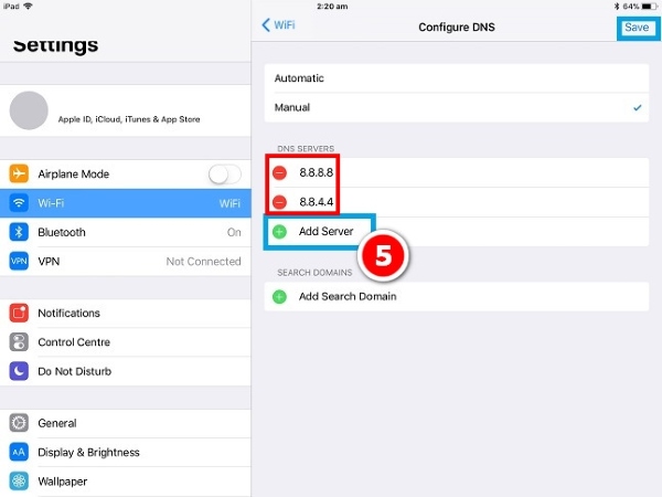 Bước 4: Nhấn Save để lưu cài đặt và áp dụng DNS Google trên iOS.