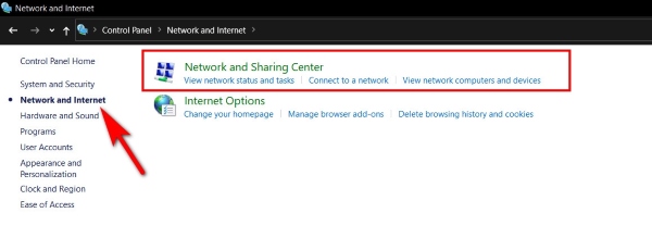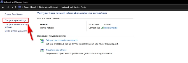 Bước 2: Chọn Network and Internet > Network and Sharing Center > Change adapter settings. Đây là phần để thay đổi cài đặt adapter cho kết nối mạng. Màn hình sẽ hiển thị các kết nối hiện tại của máy tính, bao gồm Ethernet (mạng dây) hoặc Wi-Fi (mạng không dây).