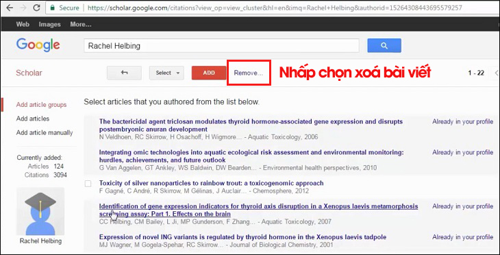 Vì vậy, các tác giả có thể khắc phục vấn đề bằng cách xem qua các lịch sử bài viết của mình, sau đó xóa đi những bài viết không đúng với nhu cầu tìm kiếm. Để xoá bài viết, bạn chọn bài viết muốn xóa và bấm nút Xóa là xong.