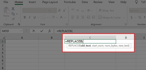 Cú pháp hàm REPLACEB như sau: =REPLACEB(old_text, start_num, num_bytes, new_text).