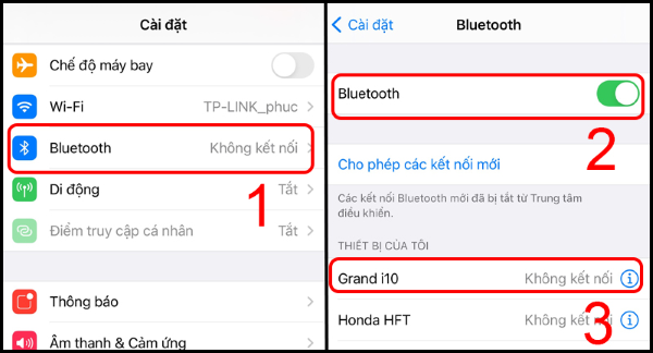 Bước 1: Mở Cài đặt (Settings) trên iPhone > Nhấn vào Bluetooth và bật trạng thái On.