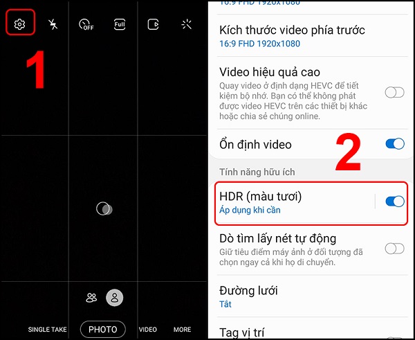 Đối với điện thoại Android, bạn chỉ cần ấn vào biểu tượng nút cài đặt >> Bật HDR (màu tươi).