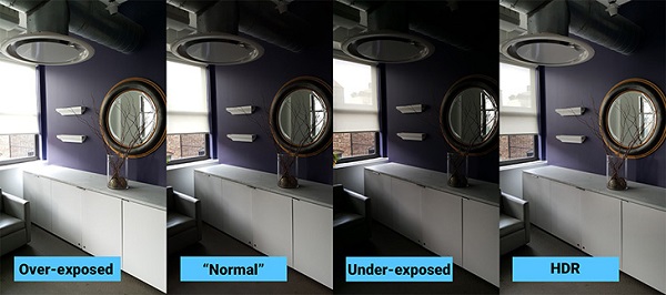 Đối với ảnh chụp thường (SDR hay Standard Dynamic Range): người dùng chỉ có thể chụp ảnh với một mức độ phơi sáng. Ví dụ, nếu như bạn kéo mức phơi sáng lên +2, thì bức ảnh của bạn có thể sẽ bị cháy sáng, nhưng nếu bạn chỉ đưa lên chụp bình thường ở mức phơi sáng mặc định thì bức ảnh chụp ra sẽ bị thiếu đi sự tương phản màu sắc, ngoài ra đối với các bức ảnh bị ngược sáng thì sẽ bị tối hoàn toàn hoặc lại bị sáng hoàn toàn.