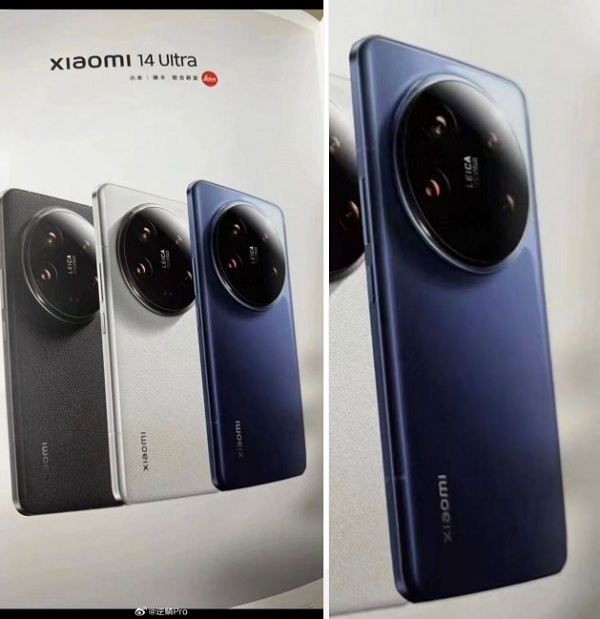 Qua hình ảnh quảng cáo Xiaomi 14 Ultra có thể thấy phiên bản màu Xanh dường như sẽ được sở hữu khung viền và mặt lưng được làm nhám mờ, nhiều tin đồn đoán sản phẩm sẽ có mặt lưng gốm. Ngược lại, phiên bản màu Trắng và Đen sẽ sở hữu mặt lưng được làm bằng da giống như Xiaomi 13 Ultra năm ngoái.