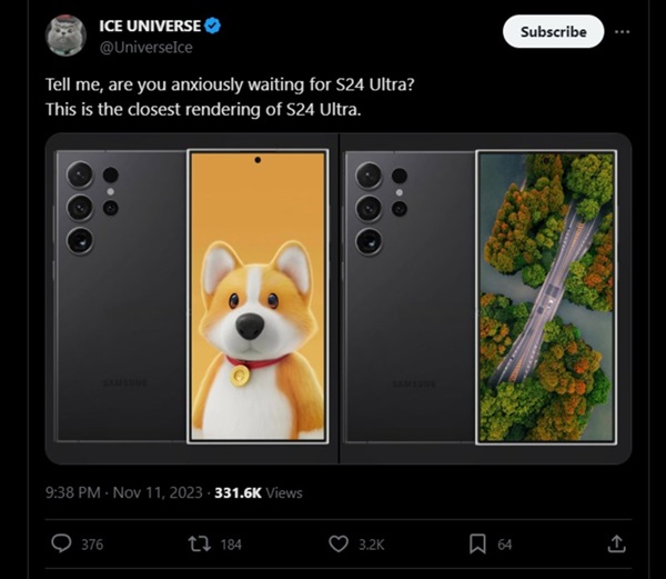 Mới đây, leaker uy tín Ice Universe đã chia sẻ hình ảnh render Galaxy S24 Series, cho thấy mẫu smartphone cao cấp này sẽ có vẻ ngoài tương tự như bản tiền nhiệm Galaxy S23 Ultra 5G, nhưng được thay đổi một chút nhằm giúp thiết kế trở nên tối ưu hơn như phần viền được làm mỏng và đều hơn. Bên cạnh đó, dự kiến thiết bị sẽ được trang bị màn hình phẳng với đường cong nhẹ ở phần giao với khung titan.