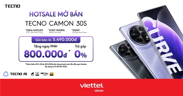 Chương trình khuyến mãi siêu hấp dẫn dành riêng cho khách hàng trong dịp hotsale mở bán TECNO CAMON 30S. Từ ngày 21-28/02/2025, khi sở hữu chiếc smartphone đình đám này, bạn sẽ được tặng ngay phiếu mua hàng trị giá 800.000đ, giúp bạn tiết kiệm đáng kể và nhận thêm nhiều ưu đãi bất ngờ.