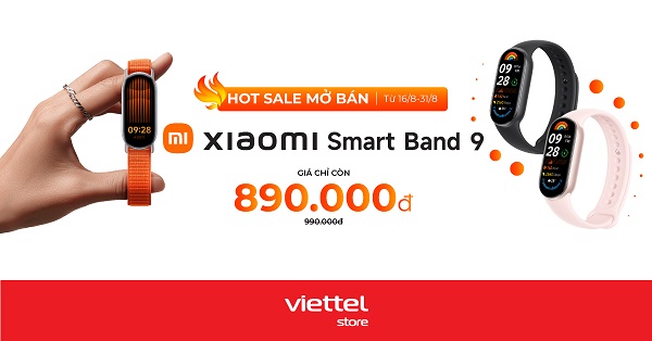 Từ nay đến 31/08, Viettel Store triển khai chương trình hot sale mở bán Xiaomi Smart Band 9 giá chỉ còn 890.000đ. Xem chi tiết đặt trước ngay chiếc smartwatch giá rẻ cực hot này bạn nhé!