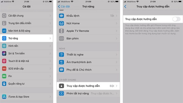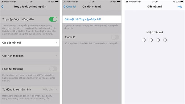 Tiếp đó, bạn bật Truy cập được hướng dẫn > Cài đặt mật mã > bạn Đặt mật mã Truy cập được hướng dẫn.