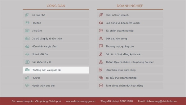 Bước 2: Tại mục CÔNG D N, bạn chọn Phương tiện và người lái phù hợp.