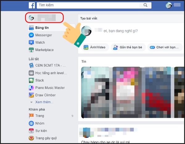 Bước 1: Mở trình duyệt web và truy cập tài khoản Facebook của mình > sau đó nhấn vào biểu tượng ảnh đại diện (avatar) Facebook của mình để mở trang cá nhân.