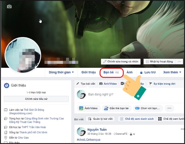 Bước 2: Tại trang cá nhân của mình, bạn hãy nhấn vào Bạn bè.