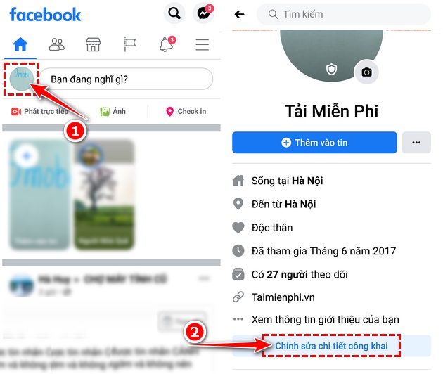 Bước 2: Tại trang cá nhân của mình, bạn hãy nhấn vào Chỉnh sửa chi tiết công khai.