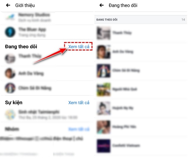 Bước 3: Tại mục Đang theo dõi, bạn nhấn Xem tất cả.