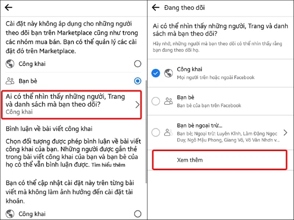 Bước 3: Chọn tiếp vào mục Ai có thể nhìn thấy những người, Trang và danh sách mà bạn theo dõi? > chọn vào Xem thêm.