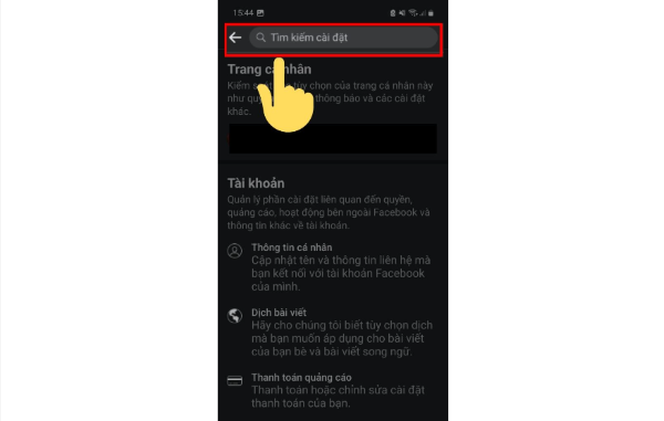 Bước 3: Tại mục hiển thị Cài đặt, bạn cần tìm thanh công cụ Tìm kiếm cài đặt.