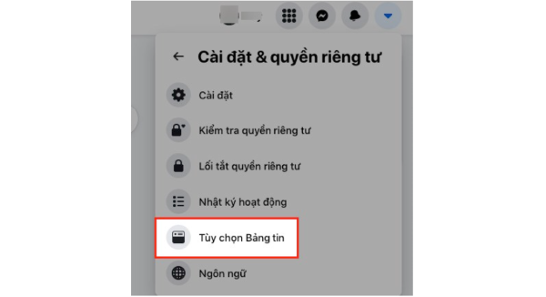 Bước 2: Chọn đến phần Tùy chọn Bảng tin.