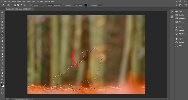 Patch Tool cũng là một công cụ dùng để xóa vật thể, tuy nhiên công cụ này sẽ cung cấp cho bạn giải pháp xóa nhanh chóng phù hợp với những mẫu xóa và vật thể ở liền nhau hoặc có khung cảnh tương đối giống nhau. Bạn chỉ cần chọn vùng xóa và kéo rê tới vùng lấy mẫu sao cho lắp ghép hợp lý nhất.