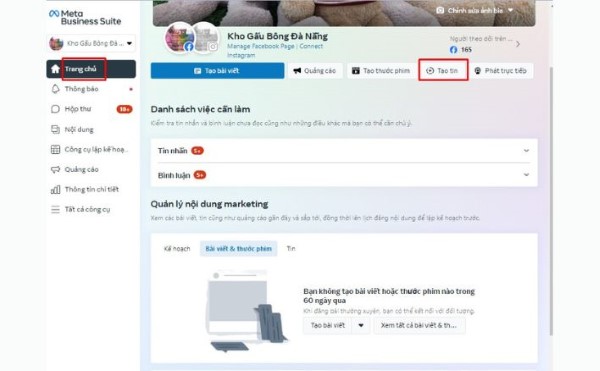 Bước 1: Truy cập Fanpage mà bạn đang giữ quyền quản lý bằng Business Facebook (bạn có thể truy cập vào nội dung tin nhắn Fanpage, Facebook sẽ tự động điều hướng sang).