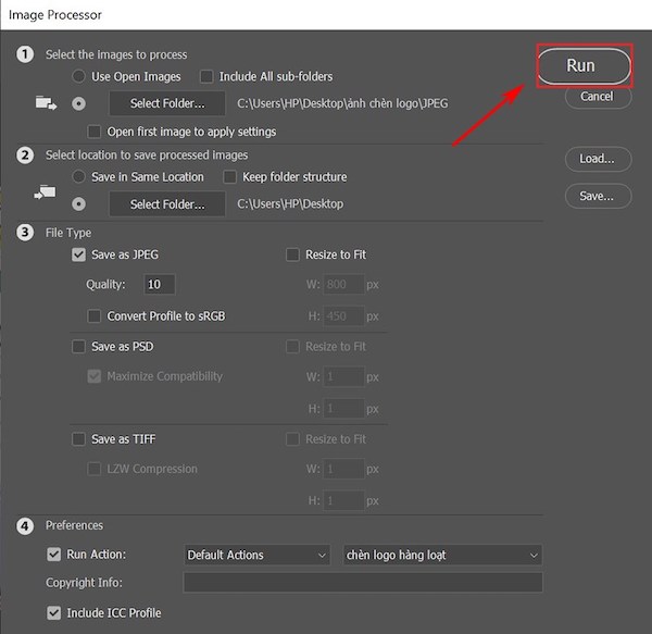 Sử dụng Action đã lưu để chèn logo vào nhiều ảnh