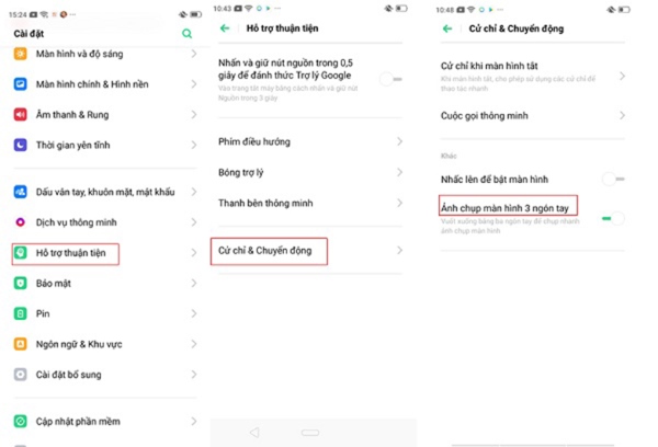 Bước 2: Gạt tùy chọn thanh ngang từ vị trí trái sang phải tại mục Ảnh chụp màn hình 3 ngón tay để tiến hành kích hoạt sử dụng tính năng này.