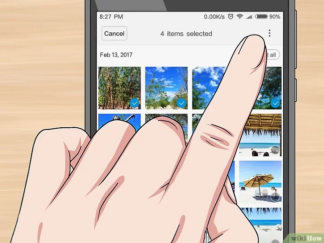 – Bước 5: Tiếp tục công việc chuyển ảnh từ điện thoại Samsung sang thẻ nhớ, các bạn hãy chọn các ảnh mình muốn chuyển. Nhấn giữ vào một ảnh bất kỳ sau đó chọn tiếp các bức hình khác.