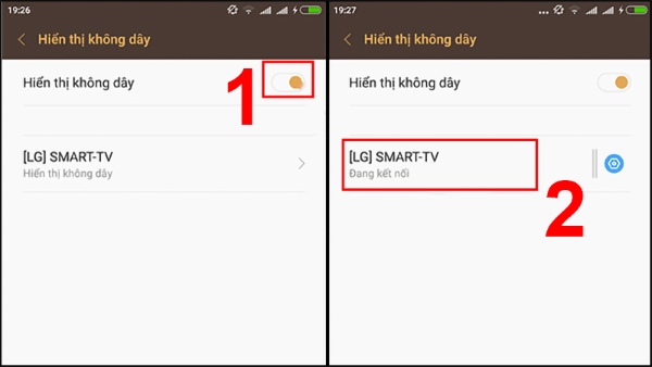 Bước 2: Bật Hiển thị không dây > chọn thiết bị tìm thấy đề kết nối là được.