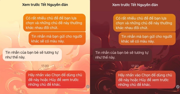 Trên điện thoại thông minh, người dùng có thể dễ dàng thay đổi theme tết Messenger với những chủ đề mới được cập nhật trong thời gian gần đây. Chủ đề Tết Xuân giúp bạn và bạn bè, người thân của mình trong các cuộc trò chuyện để có thể đón Tết vui vẻ, an lành và có nhiều niềm vui.