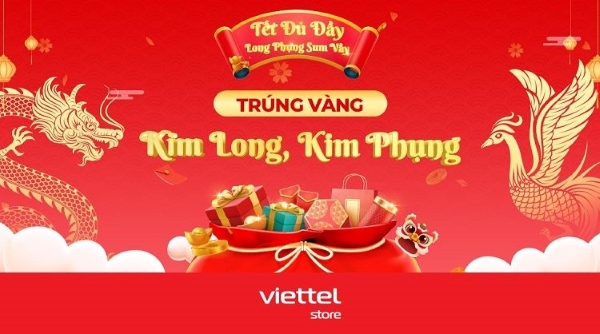 Từ ngày 1/1/2024 đến ngày 31/1/2024, tất cả khách hàng khi chọn mua điện thoại, máy tính bảng và các sản phẩm phụ kiện, đồng hồ thông minh, laptop, tivi và SIM số đẹp, bảo hiểm cho các thiết bị di động tại hệ thống cửa hàng Viettel Store trên toàn quốc sẽ được hưởng nhiều ưu đãi hấp dẫn cùng cơ hội trúng vàng Kim Long trị giá lên tới 6.800.000 đồng hoặc vàng Kim Phụng trị giá là 2.400.000 đồng.
