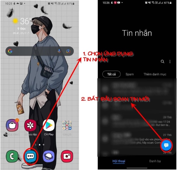 Bước 1: Mở trình nhắn tin mặc định trên điện thoại Samsung của bạn, sau đó chọn tạo tin nhắn mới.