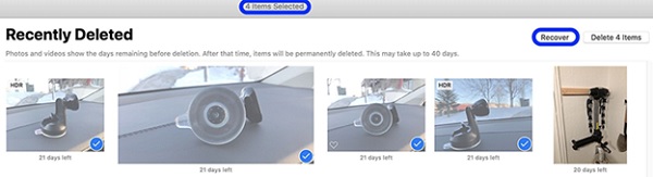 Nhìn lên phía bên trên bạn sẽ thấy số lượng hiển thị các mục đã chọn, sau đó nhấn vào Khôi phục nếu bạn đã sẵn sàng cho việc những bức ảnh đã xóa sẽ quay trở lại thư viện ảnh của mình.