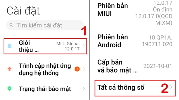 Bước 1: Mở vào Cài đặt trên điện thoại Xiaomi > chọn Giới thiệu điện thoại > chọn tiếp Tất cả thông số.