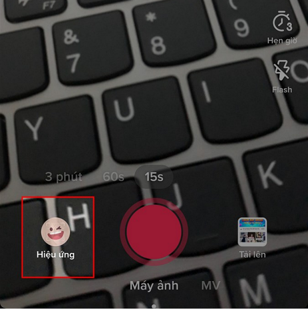 Bước 4: Cuối cùng bạn chỉ cần nhấn vào biểu tượng hình tròn màu đỏ để bắt đầu quay video với hiệu ứng vừa chọn.