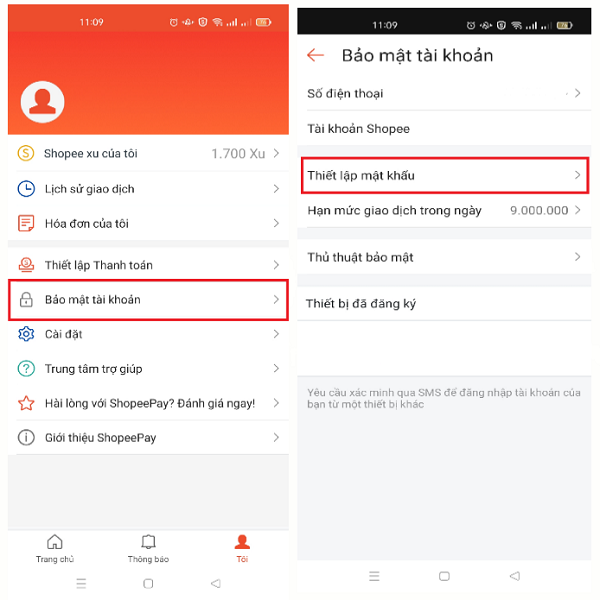 Để thay đổi mật khẩu ví ShopeePay từ ứng dụng Shopee thì sẽ không thể thực hiện được, mà bạn phải cần mở ứng dụng ShopeePay để thực hiện.