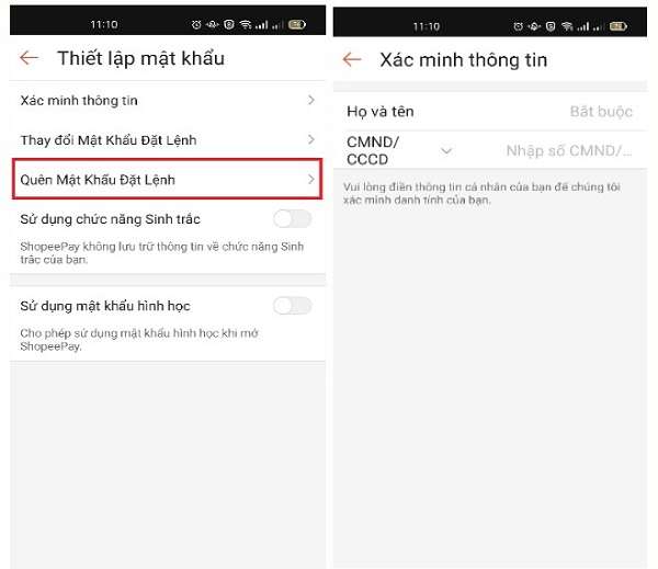 Nếu như trong trường hợp bạn đã gửi yêu cầu xác nhận thông tin người dùng của ví thành công. Nhưng lại vẫn chưa được xác thực bởi ứng dụng ShopeePay và trong khi lại quên mất mật khẩu rồi. Vậy việc bạn cần làm đó là nhập đúng thông tin như trong bản yêu cầu xác nhận thông tin người dùng đã gửi trước đó là được.