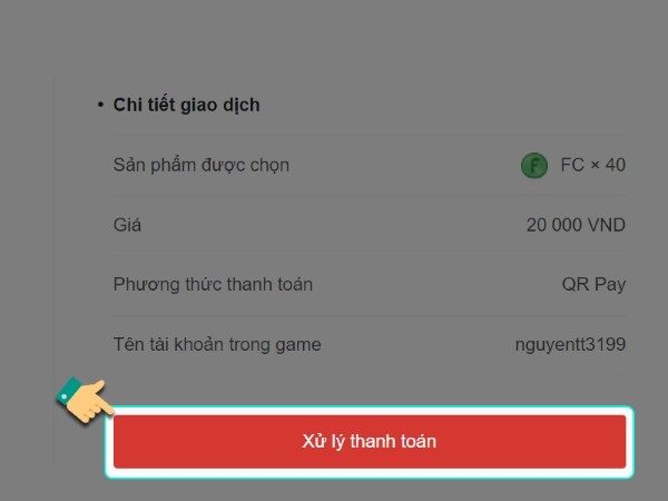 Kiểm tra thông tin và nhấn Xử lý thanh toán