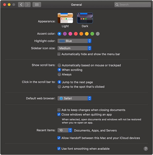 Trên phiên bản macOS Mojave, chế độ Dark Mode cho phép người dùng Macbook có thể kích hoạt đồng thời chuyển đổi sang giao diện tối màu trên toàn bộ hệ thống cũng như các ứng dụng đi kèm thiết bị.