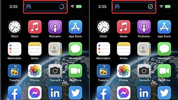 Bước 2: Sau đó, trên màn hình Dynamic Island sẽ hiển thị một hình ảnh xoáy với màu xanh lá cây trong thời gian chờ xác minh Face ID.