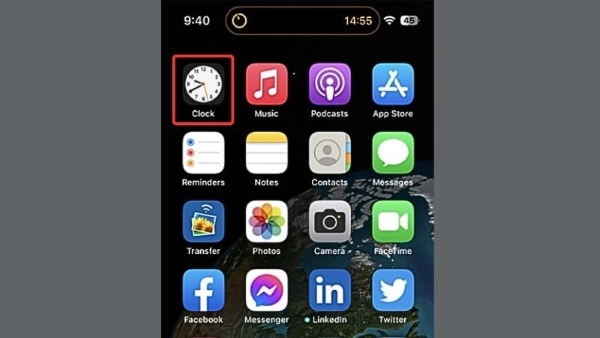 Bước 3: Để mở toàn màn hình ứng dụng Đồng hồ, bạn chỉ cần chạm vào Dynamic Island.