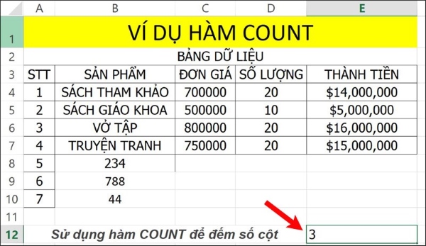 Hướng dẫn cách sử dụng hàm COUNT từ A-Z
