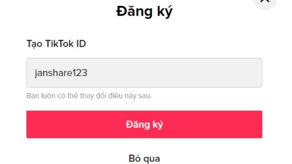 - Nhập vào tài khoản TikTok ID để hoàn tất thao tác.