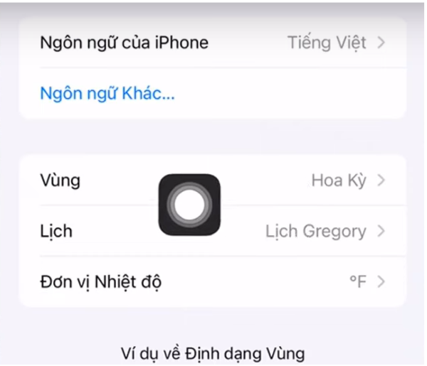 Bước 3: Nhấp vào Cài đặt > Chọn Cài đặt chung > Tìm Ngôn ngữ và vùng, sau đó đổi sang ngôn ngữ tiếng Anh và quốc gia Hoa Kỳ.