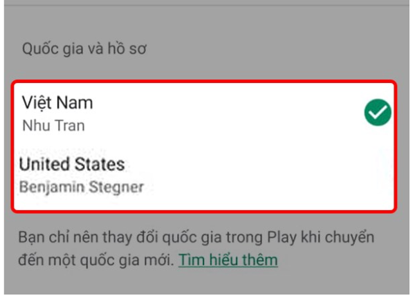 Bước 4: Tiếp theo, người dùng thực hiện chuyển vùng CH Play sang Mỹ: