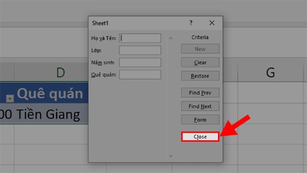 - Close: Đóng biểu mẫu nhập thông tin dữ liệu.