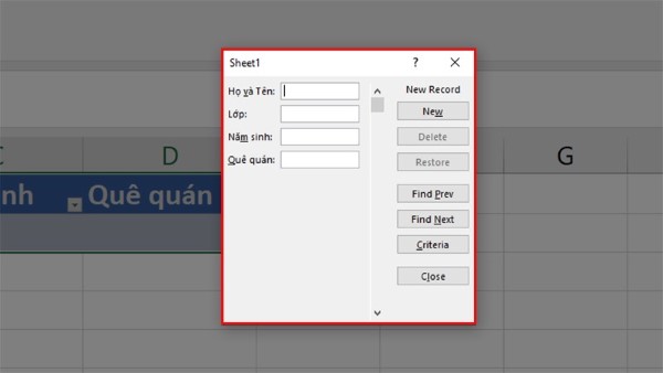 Hướng dẫn tạo Form nhập dữ liệu Excel