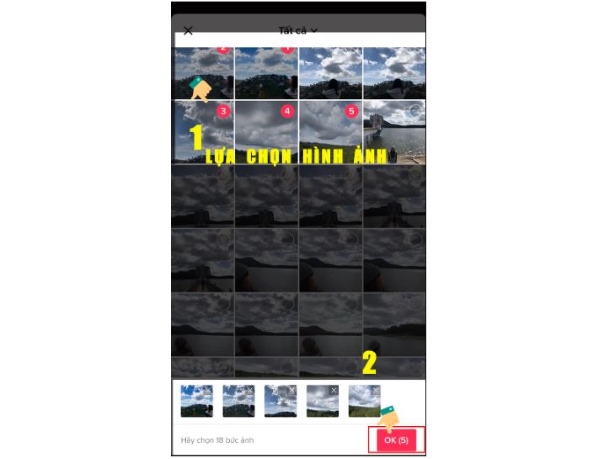 Bước 4: Chọn các ảnh từ bộ sưu tập của bạn để ghép thành video và nhấn “OK”.